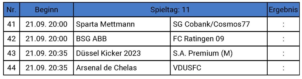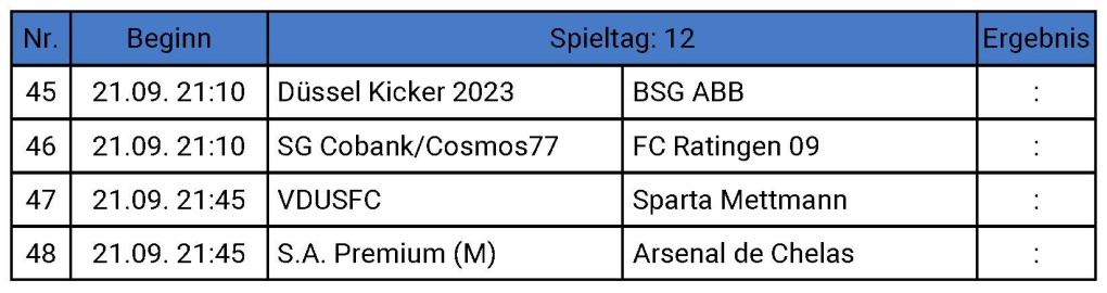 11. und 12. Spieltag am 21. September