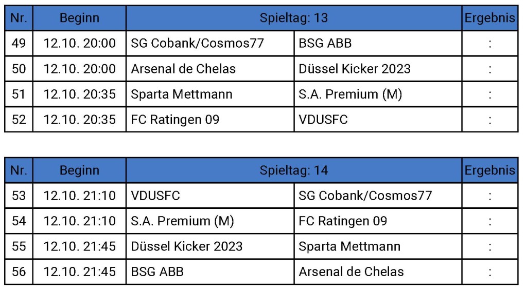 13. und 14. Spieltag am 12. Oktober