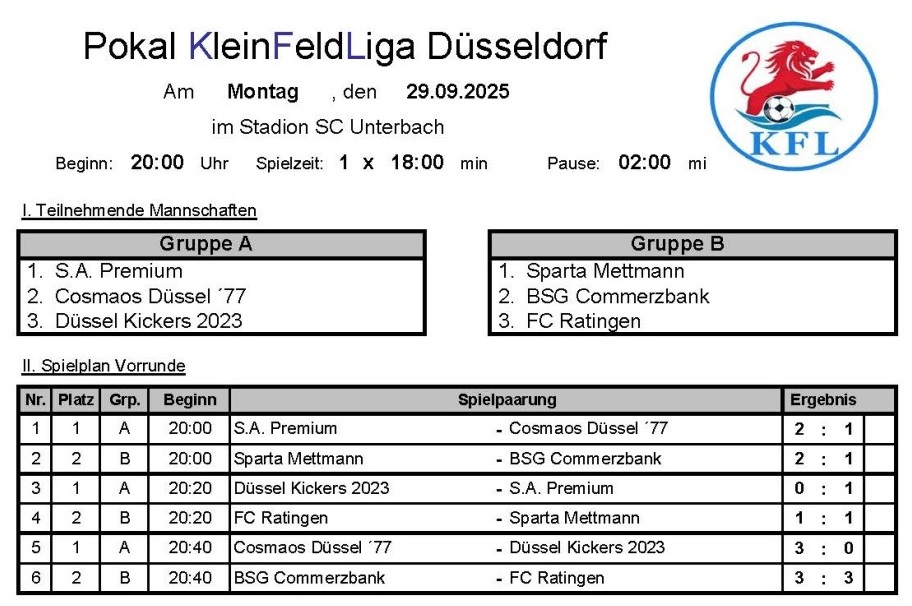 Kleinfeldliga Düsseldorf - Fußballliga für Hobby-, Freizeit- und Betriebssportmannschaften aus Düsseldorf und Umgebung